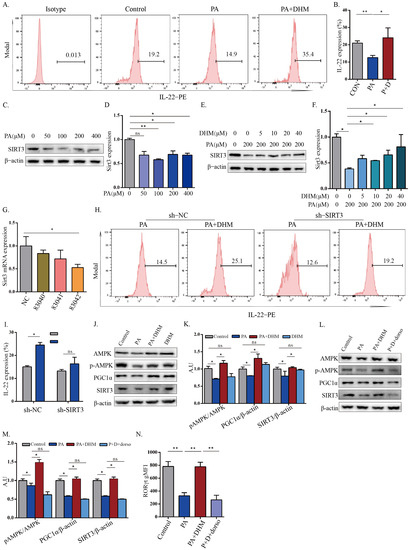 3.3. DHM Promoted IL-22 Expression in MNK3 Cells through SIRT3 via AMPK/PGC1α Signaling