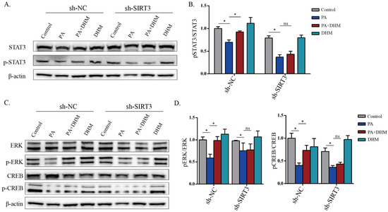 3.5. DHM Stimulated STAT3 Activation through SIRT3 in MNK3 Cells via ERK-CREB Signaling