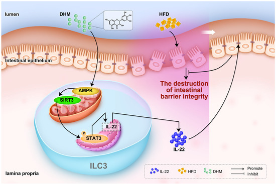 Chicago/Turabian StyleZhou, Jie, Jing Yue, Yu Yao, Pengfei Hou, Ting Zhang, Qianyong Zhang, Long Yi, and Mantian Mi. 2023. "Dihydromyricetin Protects Intestinal Barrier Integrity by Promoting IL-22 Expression in ILC3s through the AMPK/SIRT3/STAT3 Signaling Pathway" Nutrients 15, no. 2: 355. https://doi.org/10.3390/nu15020355