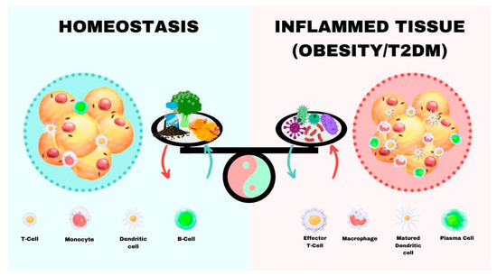 The repolarization of immune cells toward a less inflamed phenotype by reprogramming metabolism using small molecules and metabolites may be reachable [31]. For this reason, to regulate the inflammation associated with these pathologies, intervention in metabolic pathways through the modulation of metabolic energy with nutraceuticals is an attractive strategy that allows inducing important changes in cellular properties that can redrive them toward a tolerogenic immunophenotype for inflammatory disease. Thus, we provide an overview of the link between metabolism, immune function, and nutraceuticals in chronic inflammatory processes associated with obesity and diabetes, paying particular attention to the nutritional effects on APCs and T cell immunometabolism, as well as the mechanisms involved in the change in energetic pathways involved after their activation.