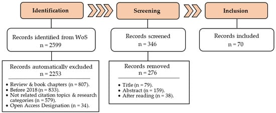Flowchart summarizing the literature selection process according to PRISMA methodology.