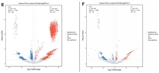 Total messenger RNA (mRNA) was extracted from the propolis-treated or control HepG2 cells. Total RNA samples with an RNA integrity number (RIN) > 7.0 and a 28S:18S ratio ≥ 1.5, which were used for subsequent library preparation and sequencing, were obtained from CapitalBio Technology (Beijing, China). High-throughput RNA sequencing (RNA-seq) was performed using the Illumina NovaSeq sequencer (Illumina, San Diego, CA). Sequencing quality was assessed using FastQC (v0.11.9) (https://www.bioinformatics.babraham.ac.uk/projects/fastqc/, accessed on 26 October 2020) to filter out low-quality data. Clean reads were then compared to the reference genome using Bowtie2 []. Using HISAT2 (v2.1.0) software, the processed reads from each sample were aligned to the public reference genome. Transcript abundances were measured as fragments per kilobase of transcript per million fragments mapped (FPKM) using HTSeq []. The DESeq2 package was used to analyze the differentially expressed genes (DEGs) between groups. The differential gene screening criterion was: |log2FC| ≥ 1 (FC: multiple of differential expression). Bioinformatics analysis was subsequently performed using oebiotech (https://cloud.oebiotech.cn/, accessed on 29 May 2023). A p-value of 0.05 was chosen as the cut-off criterion.