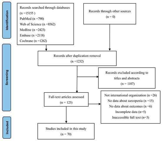 APA StyleLiu, J., Zhu, Y., Tan, J. K., Ismail, A. H., Ibrahim, R., & Hassan, N. H. (2023). Factors Associated with Sarcopenia among Elderly Individuals Residing in Community and Nursing Home Settings: A Systematic Review with a Meta-Analysis. Nutrients, 15(20), 4335. https://doi.org/10.3390/nu15204335