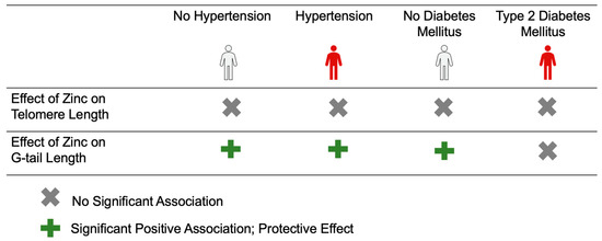 A Summarized Illustration of the Effect of Zinc on Telomere/G-tail Length as Stratified by Hypertension or Type 2 Diabetes Mellitus (N = 1064).