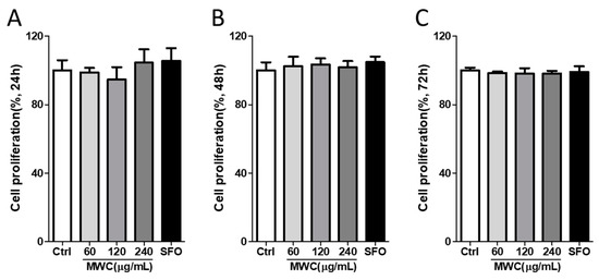 3.1. Effects of MWC on Cell Proliferation in Human iDPCs