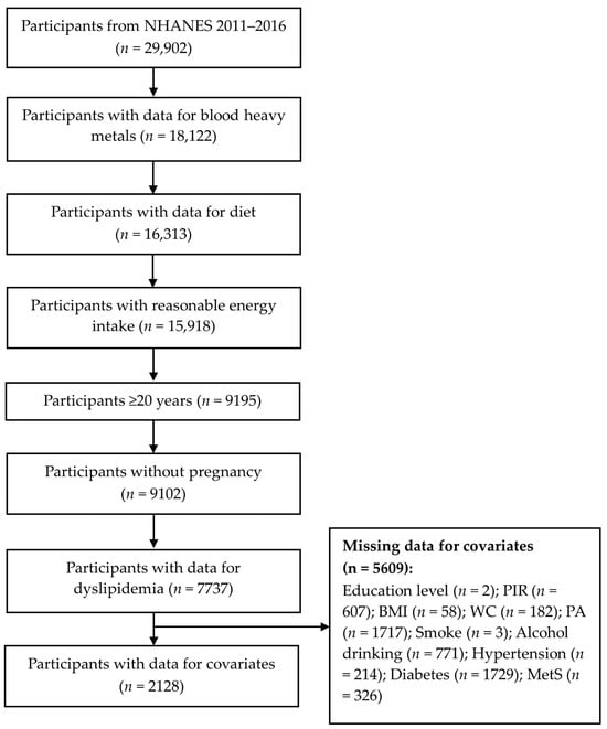 - Xu, H.; Mao, Y.; Xu, B.; Hu, Y. Low-level environmental lead and cadmium exposures and dyslipidemia in adults: Findings from the NHANES 2005–2016. J. Trace Elem. Med. Biol. 2021, 63, 126651. [Google Scholar] [CrossRef]