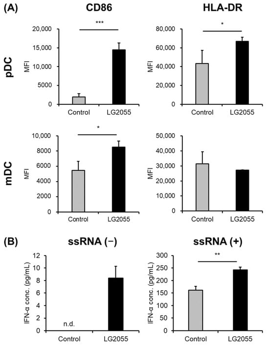 - Sugimura, T.; Jounai, K.; Ohshio, K.; Tanaka, T.; Suwa, M.; Fujiwara, D. Immunomodulatory effect of Lactococcus lactis JCM5805 on human plasmacytoid dendritic cells. Clin. Immunol. 2013, 149, 509–518. [Google Scholar] [CrossRef]