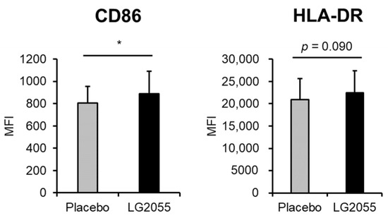 - Naito, T.; Morikawa, M.; Yamamoto-Fujimura, M.; Iwata, A.; Maki, A.; Kato-Nagaoka, N.; Oana, K.; Kiyoshima-Shibata, J.; Matsuura, Y.; Kaji, R.; et al. Diverse impact of a probiotic strain, Lacticaseibacillus paracasei Shirota, on peripheral mononuclear phagocytic cells in healthy Japanese office workers: A randomized, double-blind, controlled trial. Biosci. Microbiota Food Health 2023, 42, 65–72. [Google Scholar] [CrossRef]