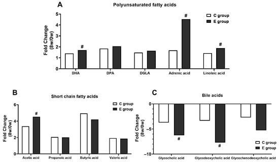 4.2. BL-99 Supplementation Combined with Training Ameliorated Lipid Metabolism through Short-Chain Fatty Acids