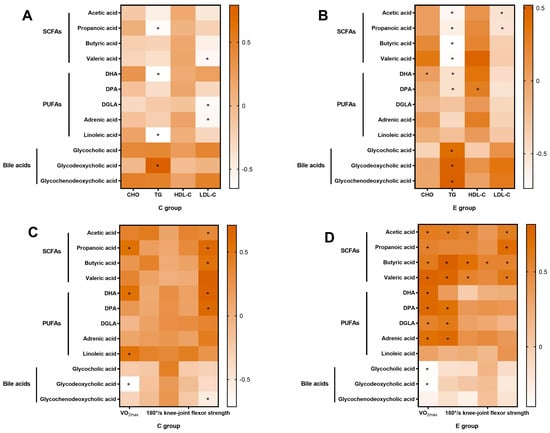 3.9.2. Analysis of the Correlation of the Most Regulated Metabolites with Lipid-Metabolism-Related Indicators and Sports Performance