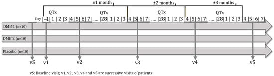 BIA performance is to be carried out at scheduled visits v1, v3, v4, and v5. Changes that occurred in BIA parameters month by month were evaluated using the mean of the change and compared between treatments to evaluate the evolution.