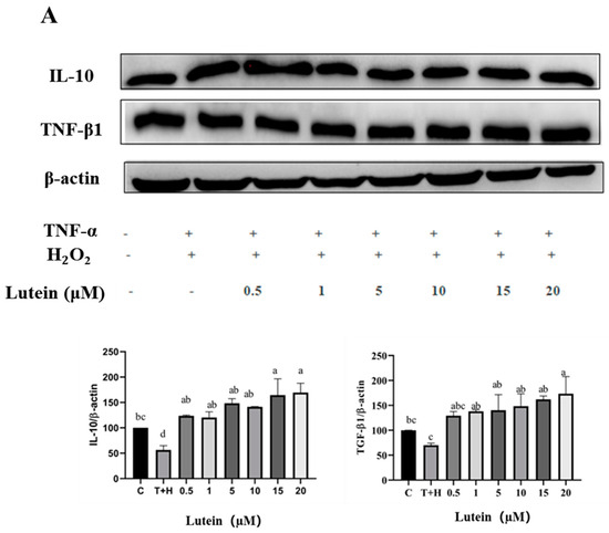 3.6. Effects of Lutein, Lycopene, and Tomato Extract on the Expression of Anti-Inflammatory Cytokines in H9c2 Cells