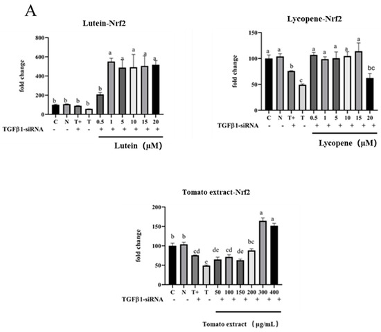 3.8. Activation of Nrf2 Pathway by Lutein, Lycopene, and Tomato Extract