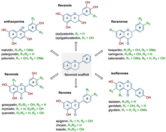 Structure of flavonoids and selected representatives of each of their six subclasses.
