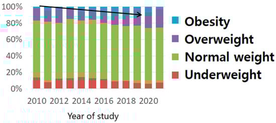 To identify the changes in weight trends, joinpoint regression was estimated for each parameter mentioned above using the Joinpoint Regression Program, Version 4.5.0.1 (Statistical Research and Applications Branch, National Cancer Institute, Rockville, MD, USA).