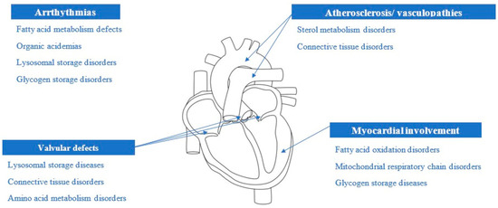 Cardiovascular involvement is a known feature of a myriad of inherited metabolic disorders (IMDs). Cardiac manifestations may occur in the absence of any other signs or symptoms, or they may be part of a multisystem disorder. In order to suspect an impairment of metabolism in a patient with cardiovascular disease, it is useful to first broadly summarize the relationship between the type of cardiac injury and the nature of the metabolic error (Figure 1).