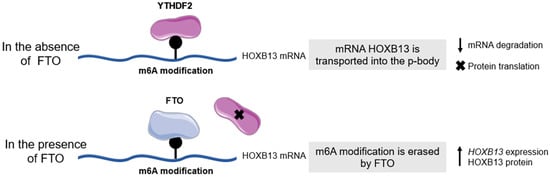- Zhang, L.; Wan, Y.; Zhang, Z.; Jiang, Y.; Lang, J.; Cheng, W.; Zhu, L. FTO demethylates m6A modifications in HOXB13 mRNA and promotes endometrial cancer metastasis by activating the WNT signalling pathway. RNA Biol. 2021, 18, 1265–1278. [Google Scholar] [CrossRef]