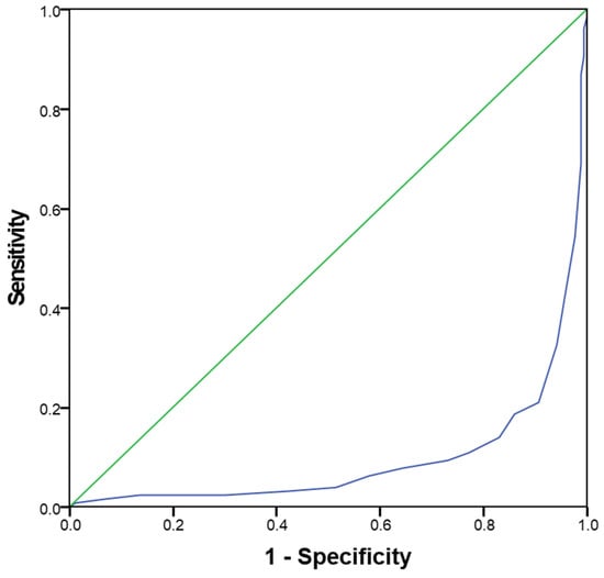 Finally, an ROC curve was performed in order to identify whether the MEDAS value was able to predict normal sperm parameters (Figure 4). The MEDAS threshold that best identified subjects with at least one altered sperm parameter was 6.25. A MEDAS value of 6.26 predicted normozoospermia, with an AUC = 0.096 (CI: 0.059–0.133; p < 0.00).