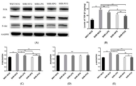 3.6. Levels of Pi3k/Akt Signaling Pathway and TGF-β1 in SHR Rats