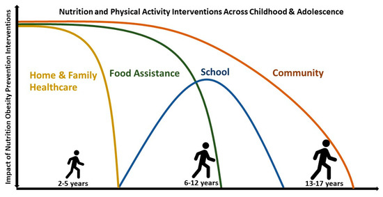 Interventions to prevent pediatric obesity can help to establish healthy habits to improve current and future health. Childhood and adolescence are stages of dynamic growth in which developmental skills, interests, and emotional maturity vary between peers and within individuals over time. Whereas younger children rely more on caregivers to learn how to eat and prepare food, older children become increasingly autonomous in choosing foods [5]. Thus, for interventions to be effective, they must accommodate diverse contexts and changing needs, including level of involvement in home life, in school, and with peers.