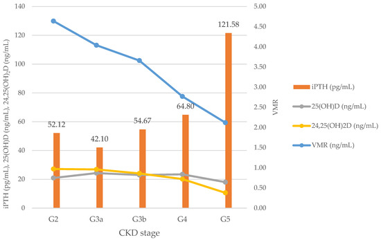 Abbreviations: CKD, chronic kidney disease; iPTH, intact parathyroid hormone; 25(OH)D, 25-hydroxy vitamin D; 24,25(OH)2D, 24,25-dihydroxy vitamin D; VMR, vitamin D metabolites ratio.