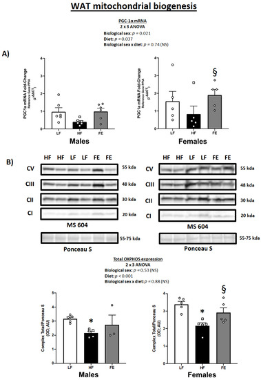 3.4. WAT PGC-1α mRNA Levels and Total OXPHOS Expression