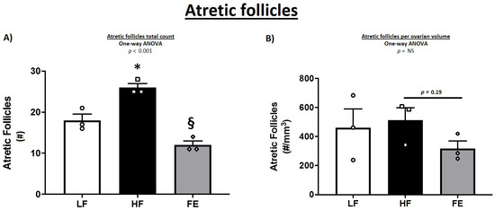 | Atretic follicles (#) | NA | NA | NA | 18.0 ± 1.5 | 26.0 ± 1.0 * | 12.0 ± 1.0 § |