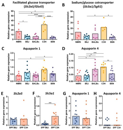 - Yamamoto, T.; Kuramoto, H.; Kadowaki, M. Downregulation in aquaporin 4 and aquaporin 8 expression of the colon associated with the induction of allergic diarrhea in a mouse model of food allergy. Life Sci. 2007, 81, 115–120. [Google Scholar] [CrossRef]