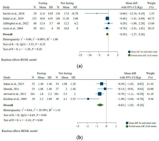 - Fernando, H.A.; Zibellini, J.; Harris, R.A.; Seimon, R.V.; Sainsbury, A. Effect of Ramadan Fasting on Weight and Body Composition in Healthy Non-Athlete Adults: A Systematic Review and Meta-Analysis. Nutrients 2019, 11, 478. [Google Scholar] [CrossRef] [PubMed]