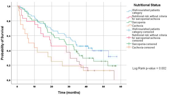 Kaplan Mayer curves of overall survival according to nutritional status.