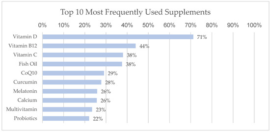Ten most used supplements in this sample cohort with percentage of cohort using the supplement.