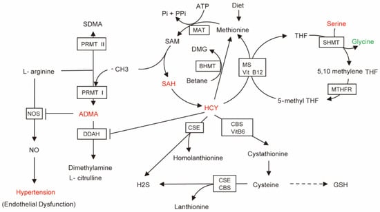 - Chien, S.J.; Lin, I.C.; Hsu, C.N.; Lo, M.H.; Tain, Y.L. Homocysteine and Arginine-to-Asymmetric Dimethylarginine Ratio Associated With Blood Pressure Abnormalities in Children With Early Chronic Kidney Disease. Circ. J. 2015, 79, 2031–2037. [Google Scholar] [CrossRef] [PubMed]