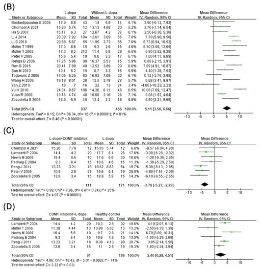 - Song, Z.; Zhang, J.; Xue, T.; Yang, Y.; Wu, D.; Chen, Z.; You, W.; Wang, Z. Different Catechol-O-Methyl Transferase Inhibitors in Parkinson’s Disease: A Bayesian Network Meta-Analysis. Front. Neurol. 2021, 12, 707723. [Google Scholar] [CrossRef]