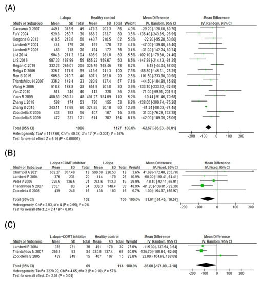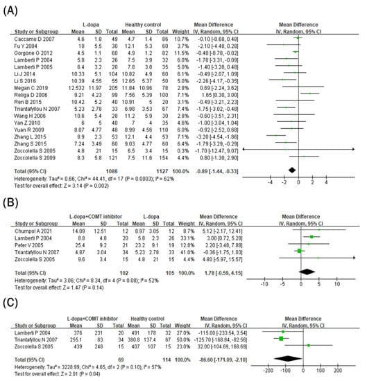 APA StyleKim, J. H., Jin, S., Eo, H., Oh, M. S., & Lim, Y. (2023). Two Faces of Catechol-O-Methyltransferase Inhibitor on One-Carbon Metabolism in Parkinson’s Disease: A Meta-Analysis. Nutrients, 15(4), 901. https://doi.org/10.3390/nu15040901