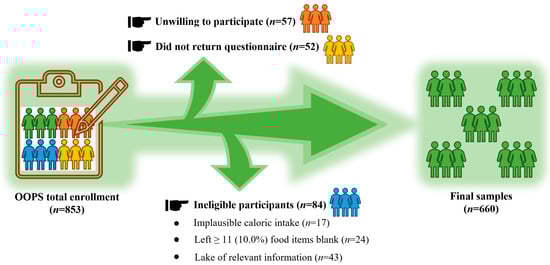 - Gong, T.-T.; Liu, F.-H.; Liu, Y.-S.; Yan, S.; Xu, H.-L.; He, X.-H.; Wei, Y.-F.; Qin, X.; Gao, S.; Zhao, Y.-H.; et al. A Follow-Up Study of Ovarian Cancer (OOPS): A Study Protocol. Front. Nutr. 2022, 9, 872773. [Google Scholar] [CrossRef] [PubMed]