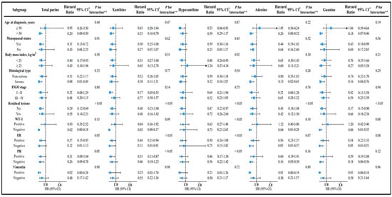 Du, Z.; Gong, T.; Wei, Y.; Zheng, G.; Zhao, J.; Zou, B.; Qin, X.; Yan, S.; Liu, F.; Xiao, Q.; et al. Purine Intake and All-Cause Mortality in Ovarian Cancer: Results from a Prospective Cohort Study. Nutrients 2023, 15, 931. https://doi.org/10.3390/nu15040931