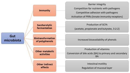 Literature reports many roles for gut microbiota, dealing with different pathways. Figure 1 shows a synopsis of the most important functions worldwide attributed to it.