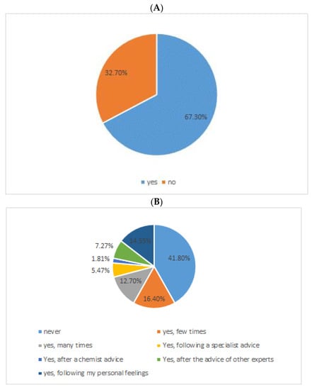 Awareness about probiotics and the use of probiotic foods. (A) Do you know what probiotics are? (B) Have you ever used probiotics?