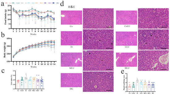 3.1. Effects of Lutein on Food Intake, Body Weight and Liver Tissue