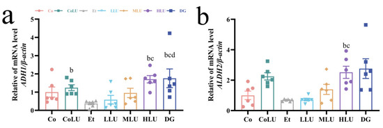 3.3. Effect of Lutein on Alcohol Metabolism in the Liver