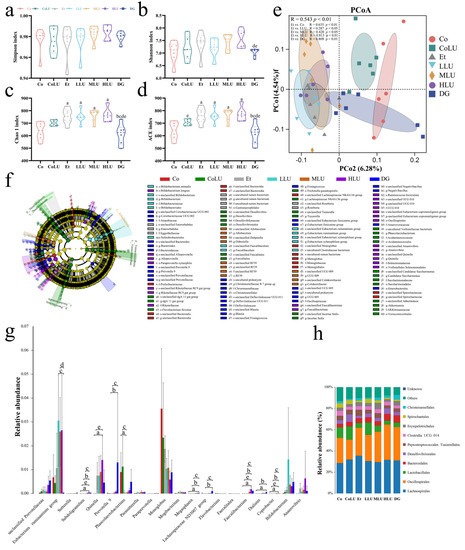 3.9. Effect of Lutein on the Microbiota of Cecum Contents