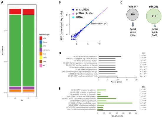 - Second, the hepatic miRNA-targetome has been recently reported [55]. It provides evidence that miR-201 and mir-547 may regulate the expression of lipid-related target genes, including Acox1, Cpt2, Apob, or Scd1. Considering that these genes were identified in our hepatic transcriptome, here, we make the case that both microRNAs might be inherited–transmitted from SL-F0 male mice and influence the hepatic lipid transcriptome.