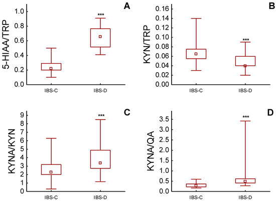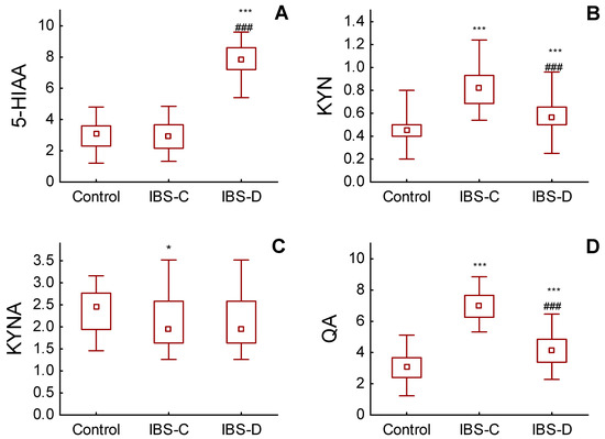 APA StyleChojnacki, C., Błońska, A., Konrad, P., Chojnacki, M., Podogrocki, M., & Poplawski, T. (2023). Changes in Tryptophan Metabolism on Serotonin and Kynurenine Pathways in Patients with Irritable Bowel Syndrome. Nutrients, 15(5), 1262. https://doi.org/10.3390/nu15051262