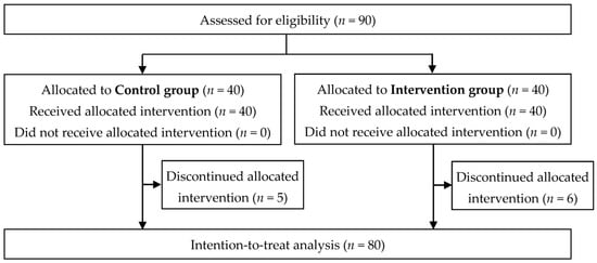 The sample size calculation was based on the ‘double-sided two-sample analysis with continuity correction’ (SISA, Simple Interactive Statistical Analysis) method. Assumptions made for this calculation were based on previous nutrition studies [], estimating a 1.0 ± 1.5 kg larger weight loss after 3 months in the intervention group who consumed the low-insulin-stimulating bread compared to the control group with the commonly consumed rye bread []. In order to identify such a weight reduction with a 1:1 randomisation, an accompanying power of 80%, a level of significance of 5%, and an estimated dropout rate of 10% [], 40 persons per group had to be recruited.