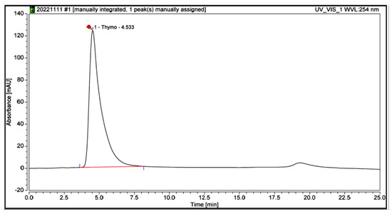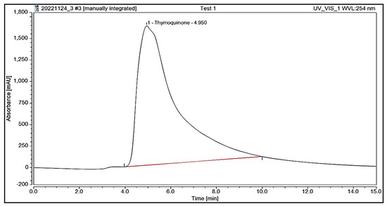 High-performance liquid chromatogram of thymoquinone in black seed oil.