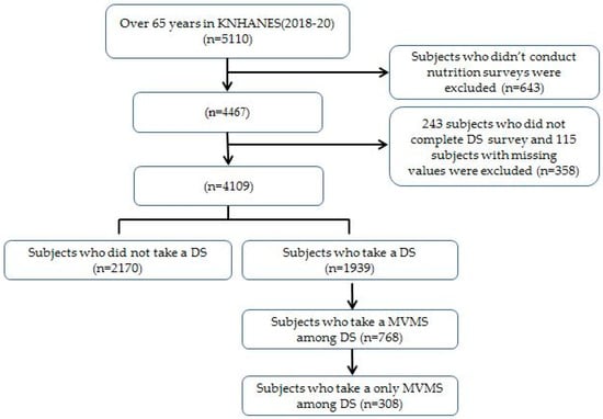Flow chart of participations. Abbreviations: KNHANES, Korean National Nutrition and Health Survey; MVMS, multi-vitamin and mineral supplements; DS, dietary supplements.