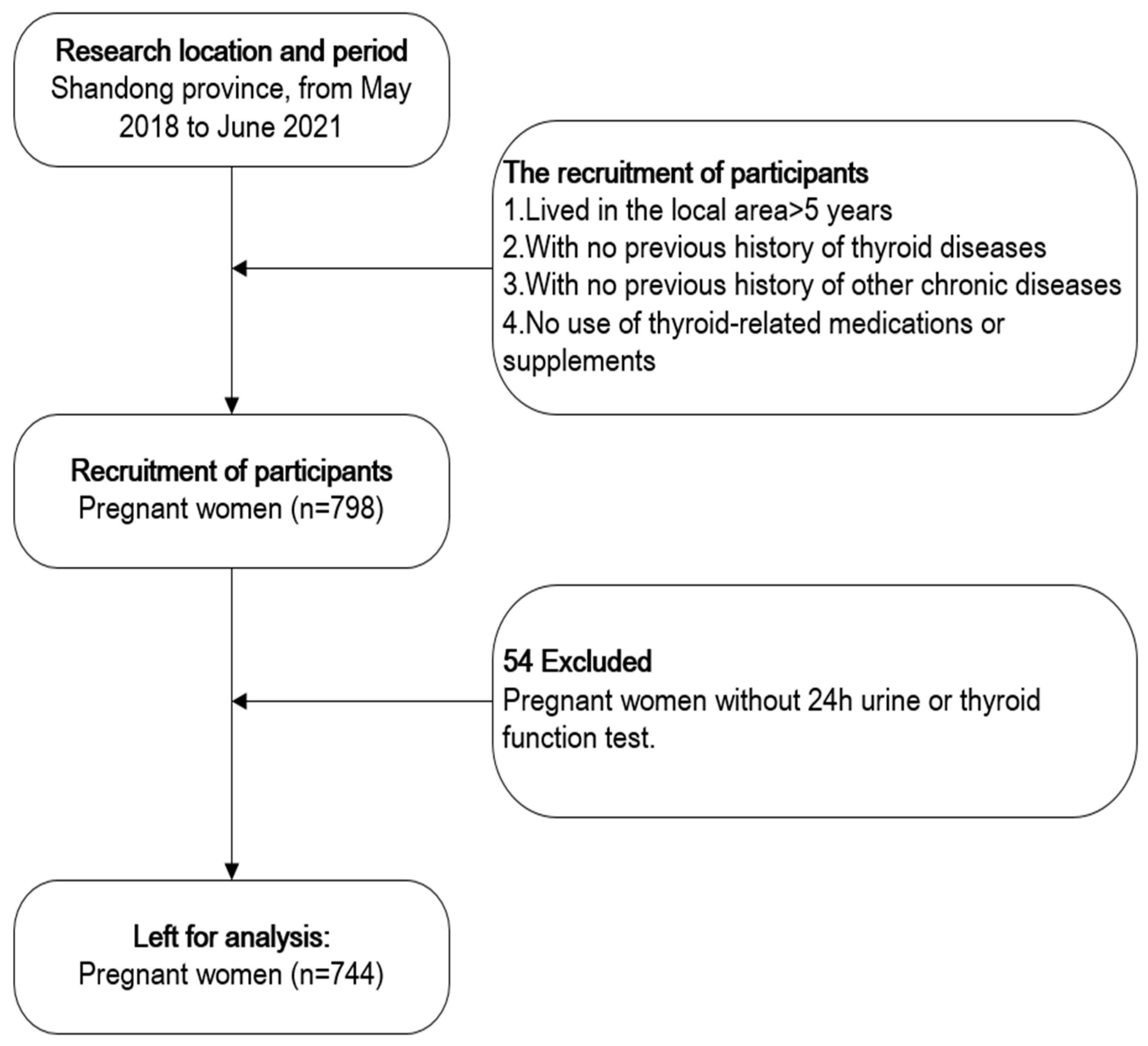- Chen, R.; Li, Q.; Cui, W.; Wang, X.; Gao, Q.; Zhong, C.; Sun, G.; Chen, X.; Xiong, G.; Yang, X.; et al. Maternal Iodine Insufficiency and Excess Are Associated with Adverse Effects on Fetal Growth: A Prospective Cohort Study in Wuhan, China. J. Nutr. 2018, 148, 1814–1820. [Google Scholar] [CrossRef] [PubMed]