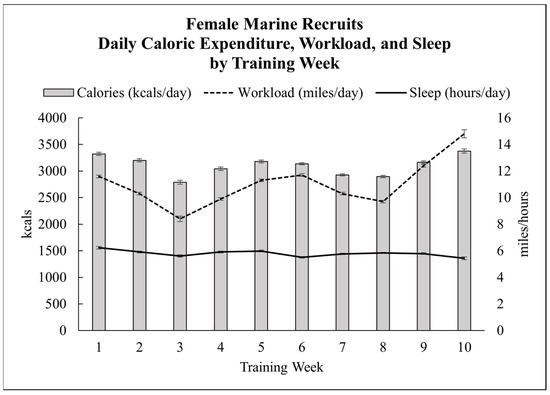 Givens, A.C.; Bernards, J.R.; Kelly, K.R. Characterization of Female US Marine Recruits: Workload, Caloric Expenditure, Fitness, Injury Rates, and Menstrual Cycle Disruption during Bootcamp. Nutrients 2023, 15, 1639. https://doi.org/10.3390/nu15071639