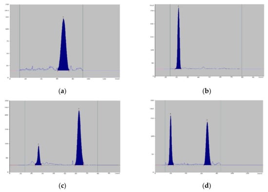 An example of sample densitograms registered for dietary supplements: Product A ((a); 1—D3), Product C ((b); 1—K2), Product F ((c); 1—K2, 2—D3) and Product K ((d); 1—K2, 2—D3).