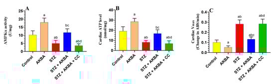 3.2. AKBA Stimulated Glycolysis and FA Oxidation in the LVs of STZ-Diabetic Rats by Stimulating AMPK